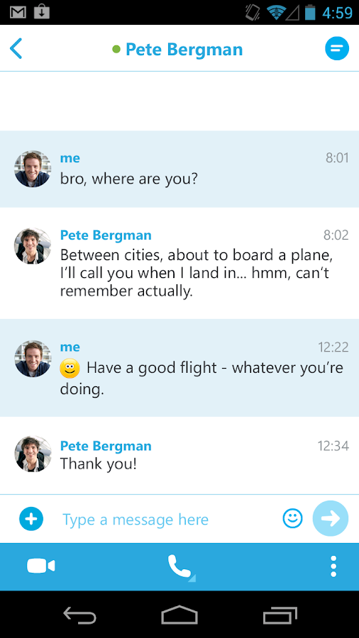 Say “hello” to friends and family with an instant message, voice or video call on Skype for free. Join the millions of people using Skype today to stay in touch with the people who matter most. There’s so much you can do, right from the palm of your hand.